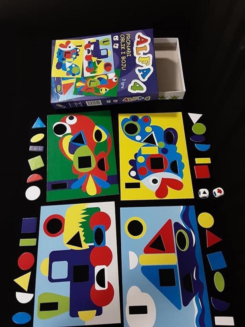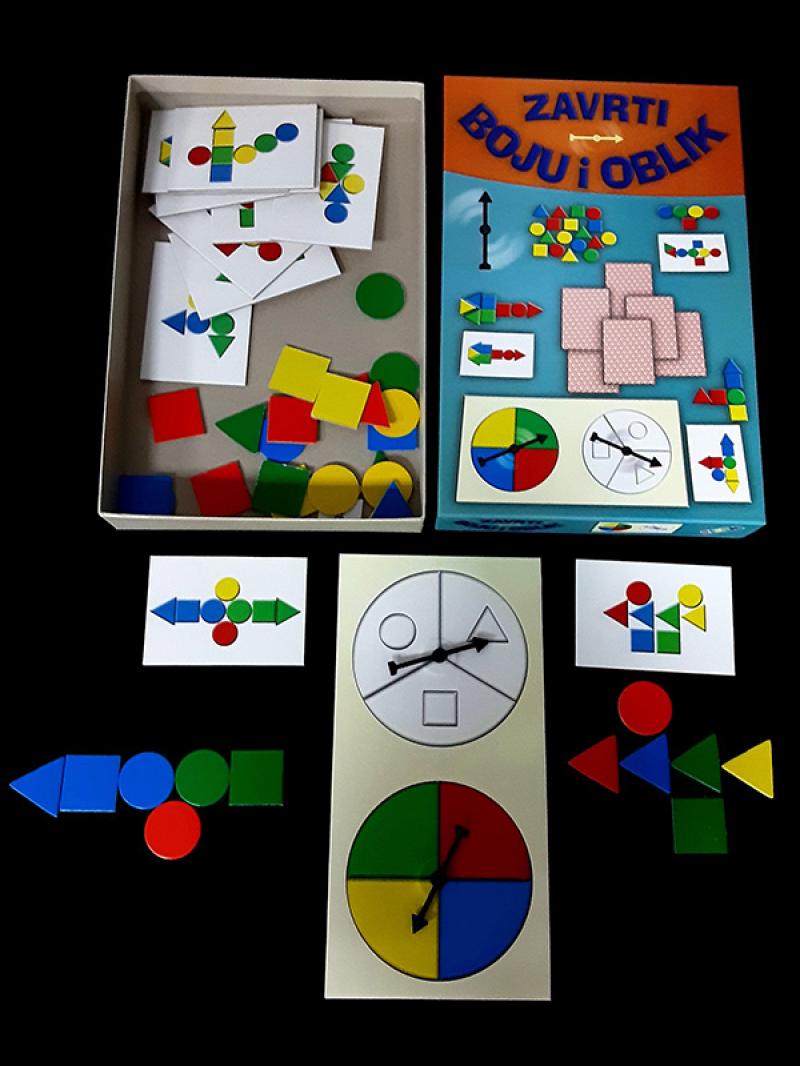 Sadržaj: 4 izdanja - ZAVRTI BOJU I OBLIK edukativna igračka u kutiji + DOMINO BOJE I OBLICI edukativna igračka u kutiji + ALFA 4 PRONAĐI BOJU I OBLIK edukativna igračka u kutiji + BOJE tvrda slikovnica sa prozorima