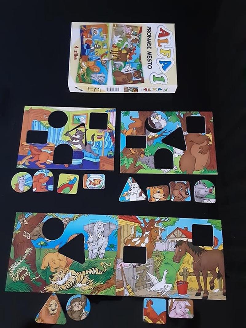 SADRŽAJ: Edukativna igračka u kutiji ALFA 1 PRONAĐI MESTO + UMETALJKA ŽIVOTINJE + UMETALJKA PREDMETI + KOMPLET 10 UKLAPALICA + KOMPLET 6 tvrdih slikovnica svet oko tebe 16x16 + RAM PUZZLE 6 DELOVA + mašna na potez