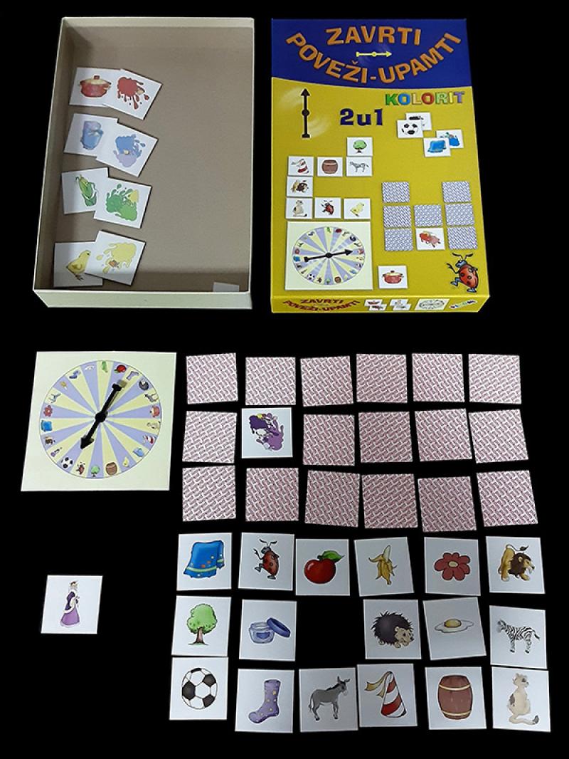 SADRŽAJ: Edukativna igr. u kutiji ZAVRTI POVEŽI UPAMTI + Edukativna igr. u kutiji SLAŽEM LOGIČNO 2 DELA + Kviz magični prozor ZA PREDŠKOLCE + Edukativna igračka u kutiji GAMA 1 ZASTAVE + Edukativna igr. u kutiji I JEDNO I DRUGO + mašna na potez